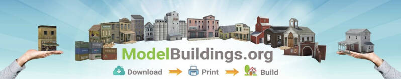 Downloadbare bouwplaten voor papier/karton van allerlei bouwwerken.