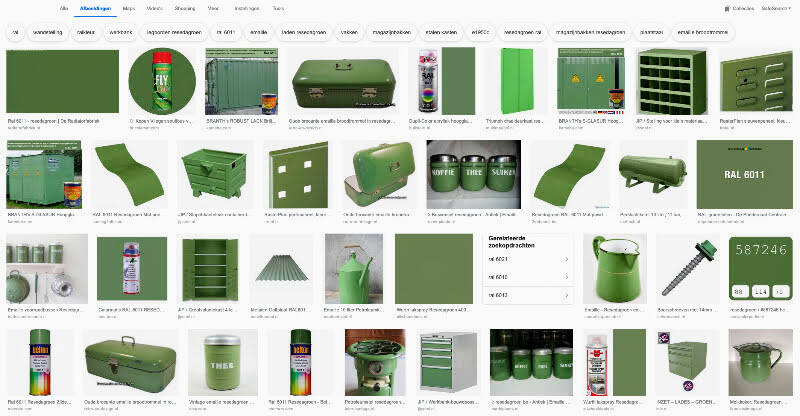 Zoeken op RAL 6011 geeft o.a. de volgende informatie: