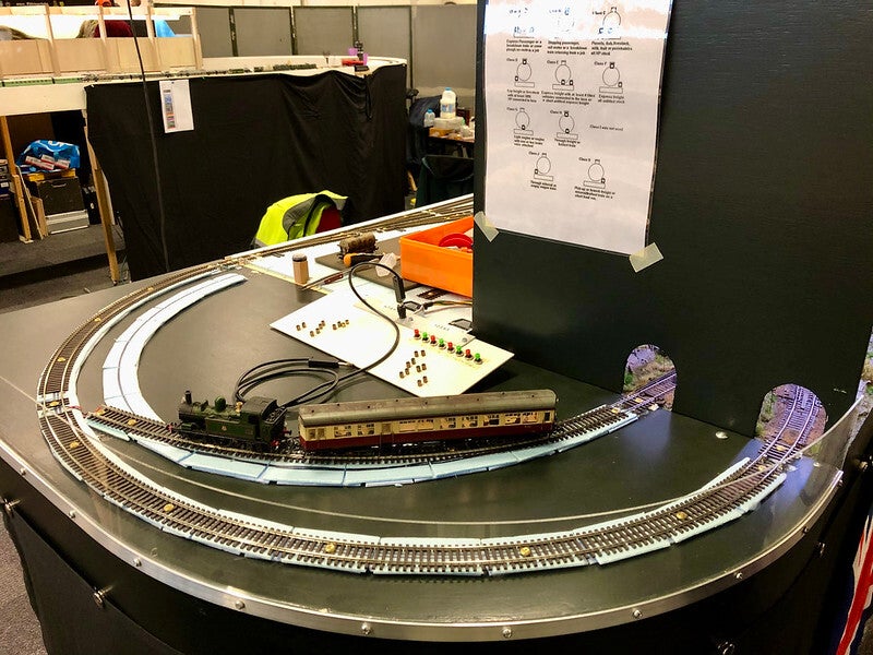 Dit reusachtige schaduwstation is van de modelspoorbaan Coppell van de Furness Model Railway Club.