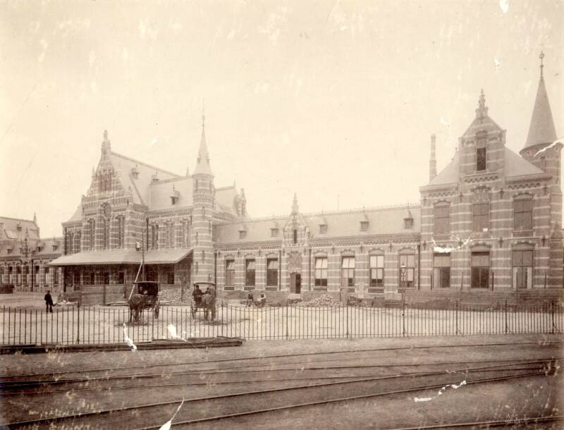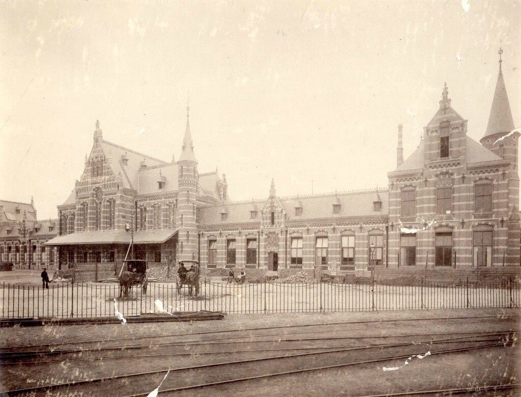 Beschrijving: Het in aanbouw zijnde NS-Station, ontworpen door architect C.H. Peters